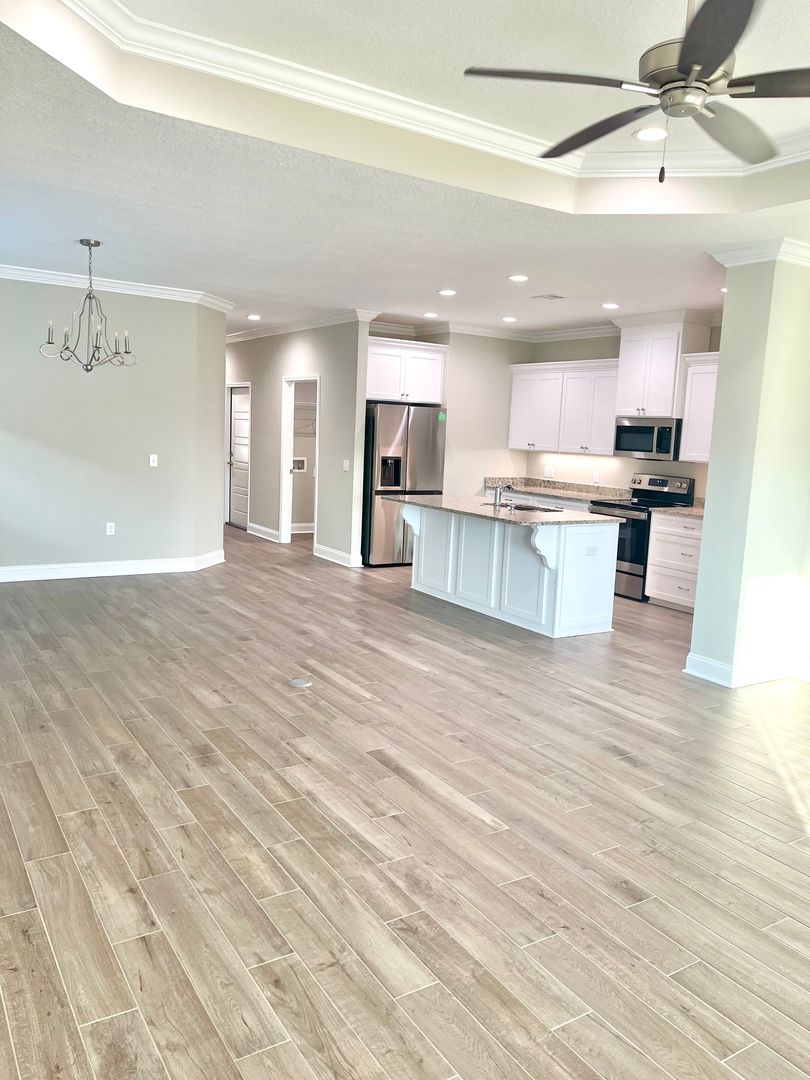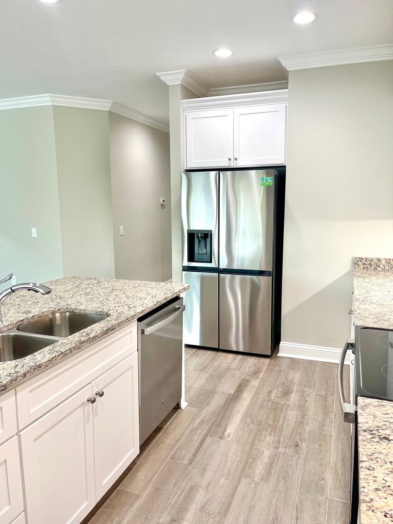 This beautiful newer-construction duplex offers 3 bedrooms and 2 bathrooms with a desirable split floor plan that provides both privacy and functional living space. The open-concept layout features a fully equipped kitchen with stainless steel appliances and granite countertops, flowing seamlessly into the living and dining areas, perfect for everyday living and entertaining. The spacious master suite includes an oversized walk-in closet, a relaxing soaking tub, and a separate tiled walk-in shower. Located in The Villas at Camden Woods, this community offers fantastic amenities including a fitness center, swimming pool, picnic pavilion, and children's play area. Conveniently situated in Kingsland, you'll enjoy easy access to shopping, dining, I-95, and Kings Bay Naval Submarine Base.
