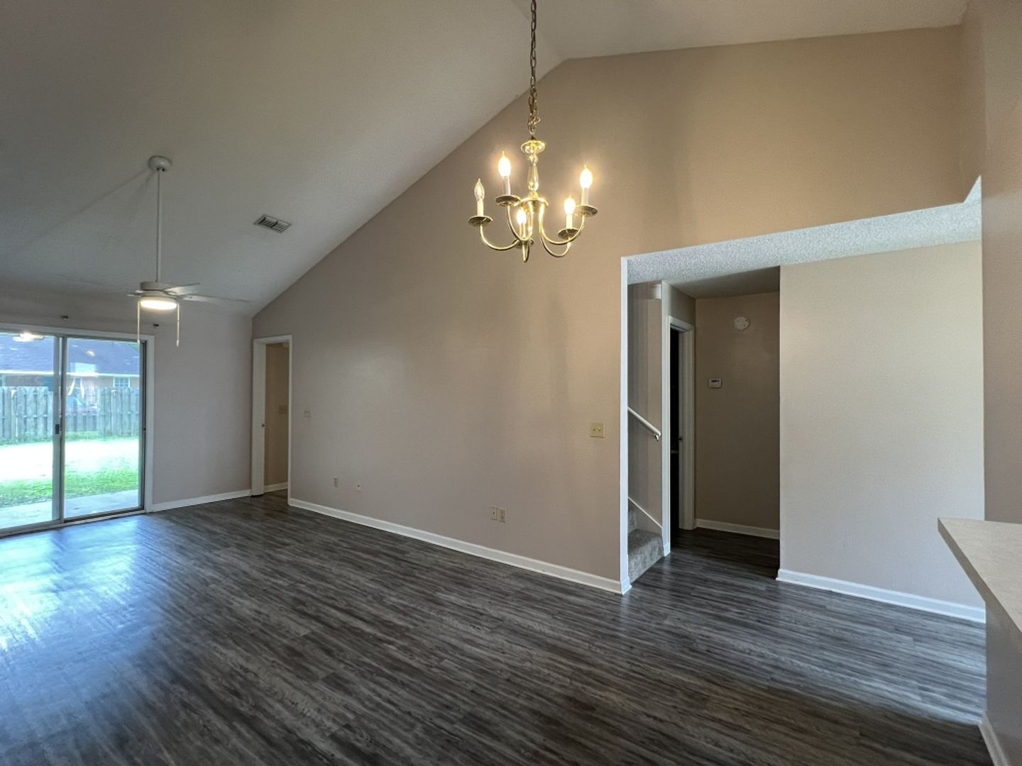 A cozy 3-bedroom, 2-bath duplex nestled in the highly sought-after Sugarmill neighborhood of Saint Marys. As you step inside, you'll be greeted by the kitchen that overlooks a spacious open living area, perfect for both relaxing and entertaining. The first floor boasts elegant vinyl plank flooring that adds a touch of warmth and sophistication throughout. On this level, you’ll find two cozy bedrooms, a convenient Jack and Jill bathroom, along with a dedicated laundry area that enhances functionality. Ascend to the second floor, where the master bedroom awaits, complete with its own private bath for your ultimate comfort and convenience. Outside, enjoy the freedom of a generously-sized fenced yard, ideal for gatherings or quiet afternoons in the fresh air. As part of the community, you'll have access to HOA amenities, including a pool and a playground. With its prime location near top-rated schools, diverse shopping options, and the Kings Bay Naval Base, as well as easy access to I-95, this home truly offers an exceptional lifestyle in a vibrant neighborhood.