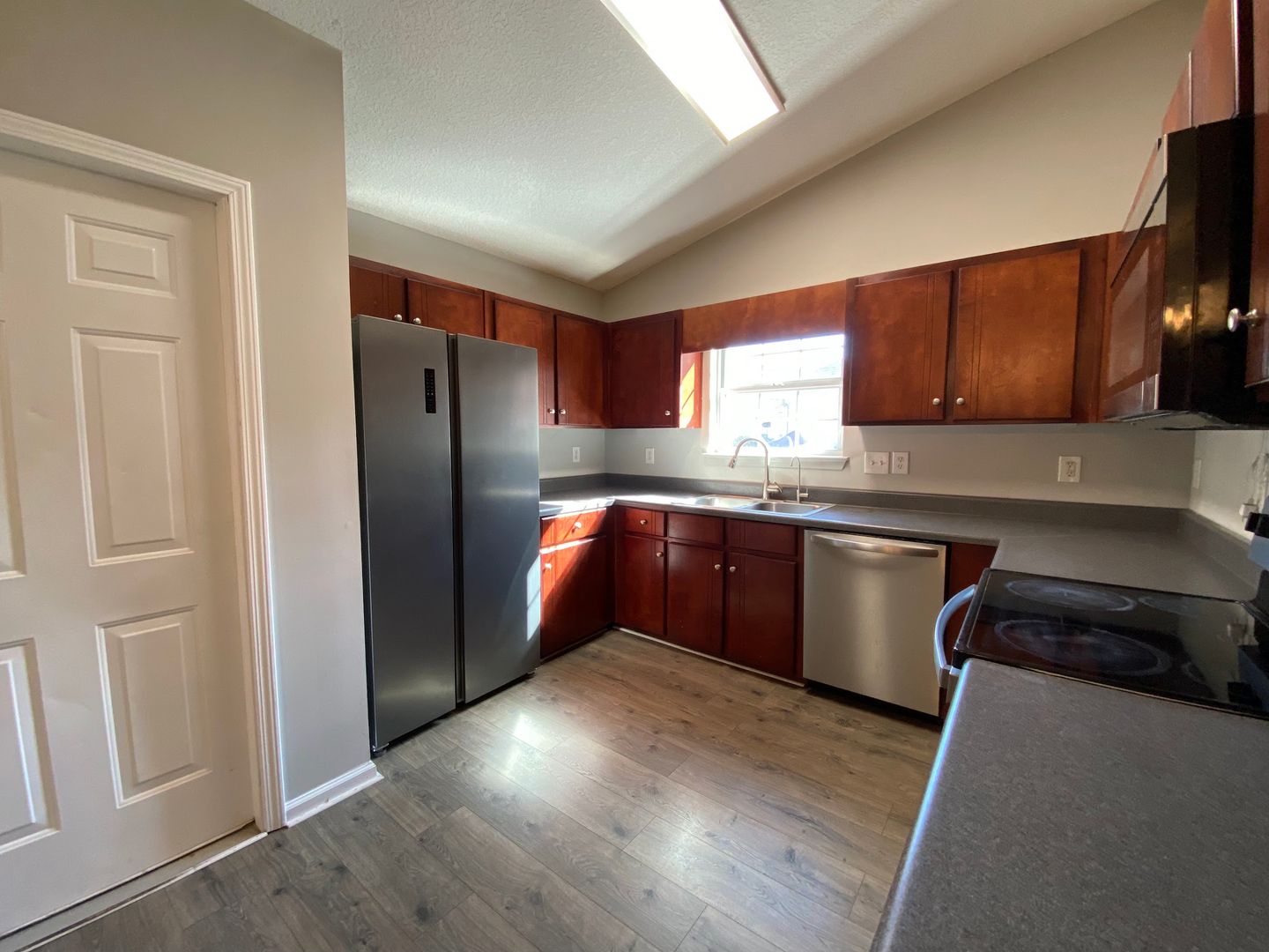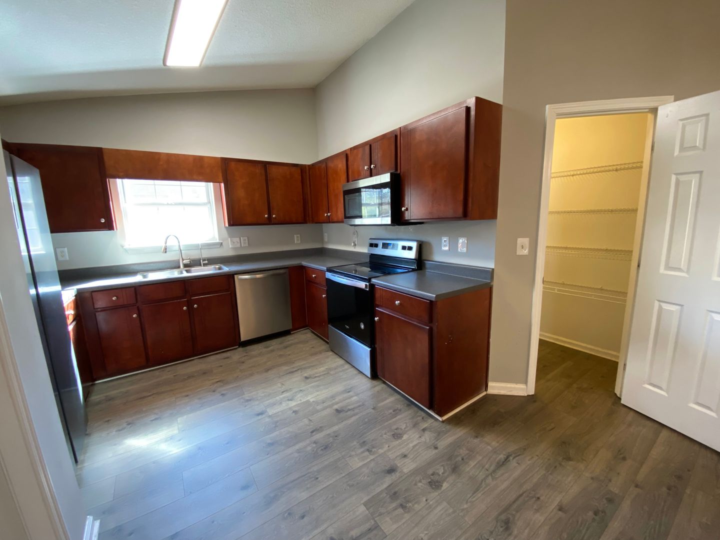 Welcome to this charming 4-bedroom, 2-bath home nestled in the picturesque Lake Vine South subdivision within The Lakes. This thoughtfully designed split floor plan boasts stunning vinyl plank flooring that gracefully flows through the main living areas, creating an inviting atmosphere. The expansive living room opens up to the heart of the home, where a spacious kitchen awaits, featuring a walk-in pantry and stainless steel appliances. Retreat to the master bedroom that includes a sizable walk-in closet, leading into a bathroom suite featuring a double vanity and linen closet. The guest bedrooms are equally impressive, offering ample closet space to accommodate all your needs. Step outside to discover a spacious backyard, ideal for entertaining or enjoying peaceful moments in nature. This beautifully situated home is conveniently located near parks, a variety of restaurants, shopping centers, schools, and the Kings Bay Naval Base and with quick access to I-95.